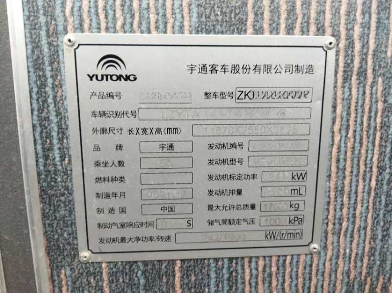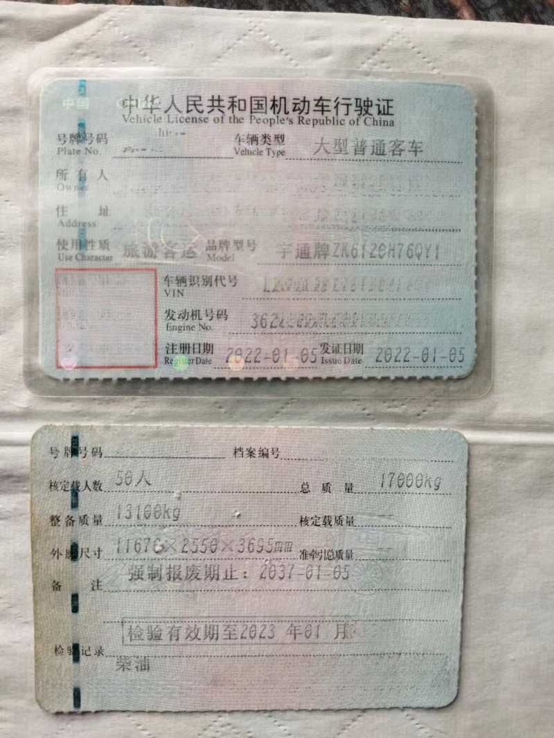 | 客车品牌 | 宇通客车 | 上牌时间 | 2022-01-10 |