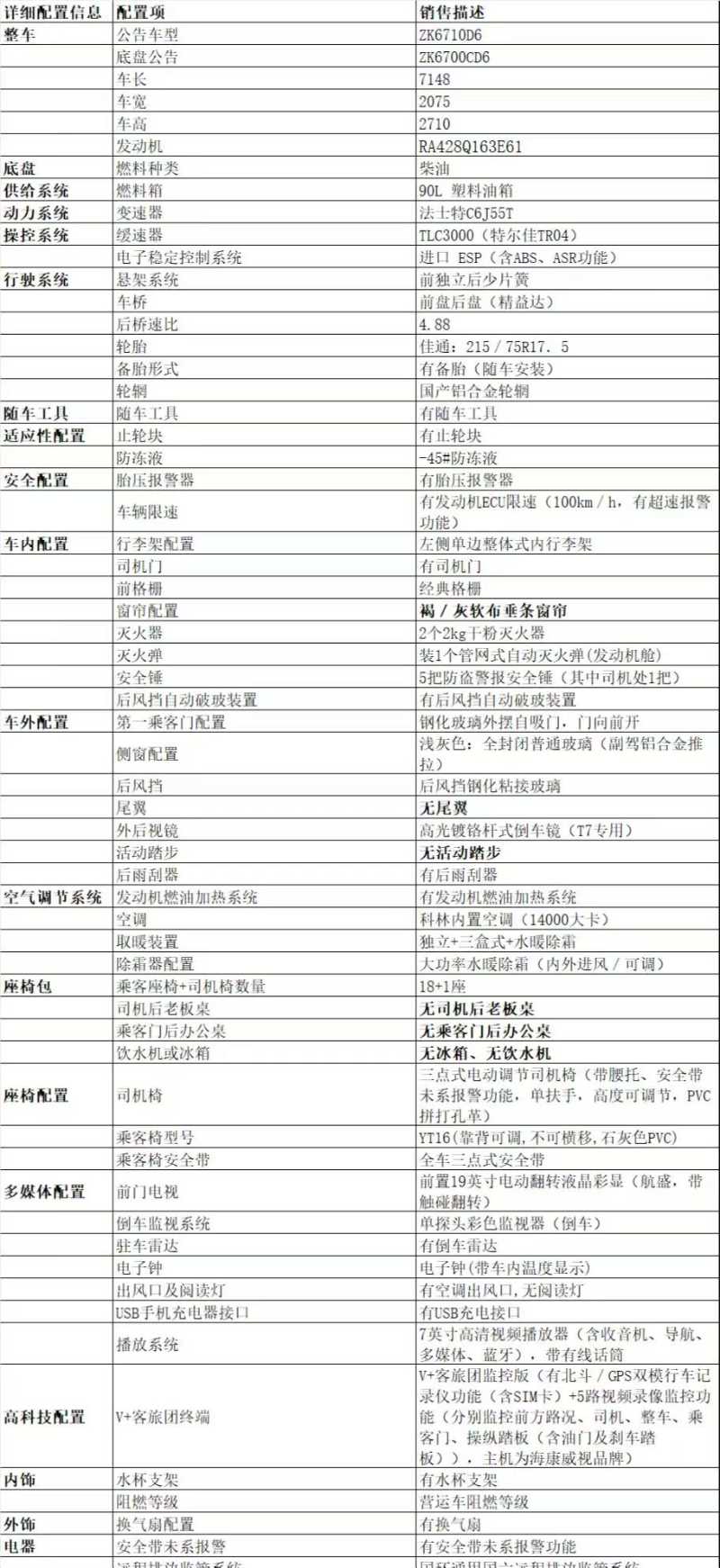 19座国六柴油宇通T7,2023年5月上牌,法士特变速器,全封闭玻璃,独立+三盒式+水暖除霜取暖装置,科林空调,倒车雷达,有USB充电接口,水杯支架,胎压报警器,公路客运性质,有兴趣的来。