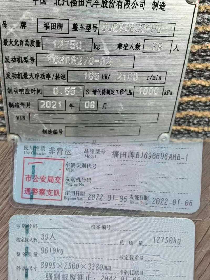 | 客车品牌 | 福田风景 | 上牌时间 | 2022-01-26 |