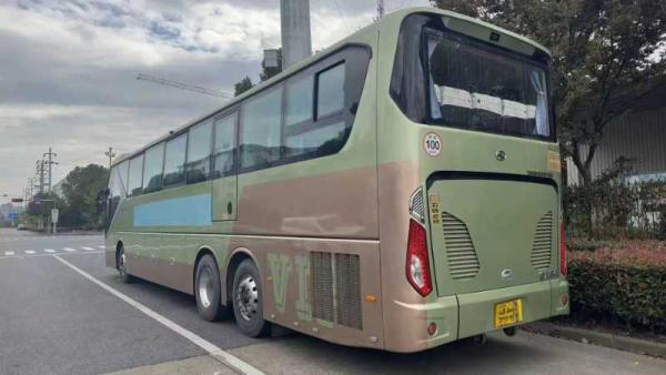 东北配置56座后吊轮金龙6135,2021年上牌,全车铝合金轮毂,潍柴375发动机,有中门,木纹地板,行李架,公里数少,价格给力。