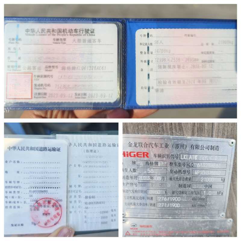 2023年9月上牌多台国六56座后吊轮海格6132营运车