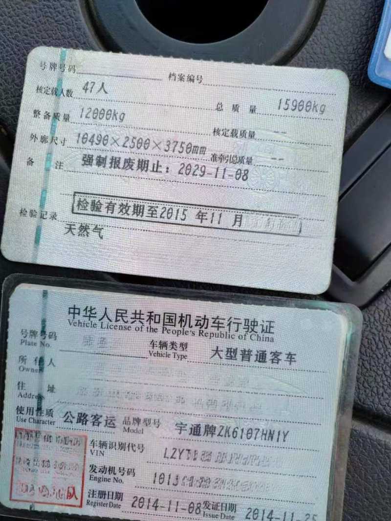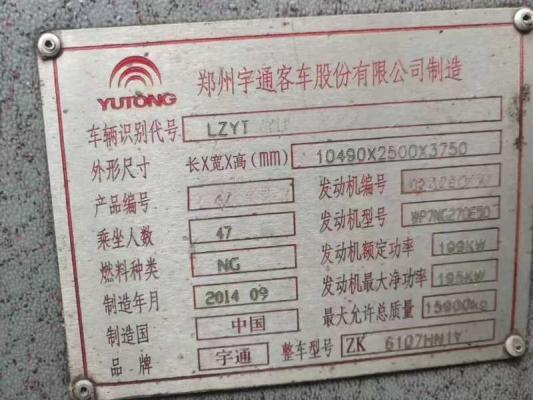 2014年11月上牌47座天然气LNG国五宇通6107营运车