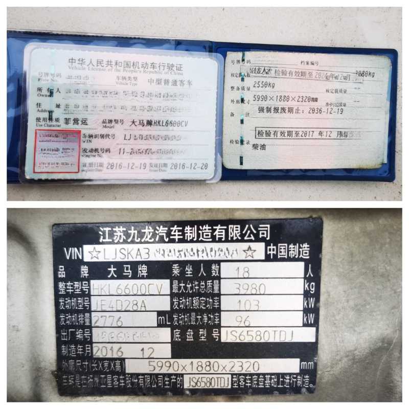 | 客车品牌 | 九龙客车 | 上牌时间 | 2016-12-22 |