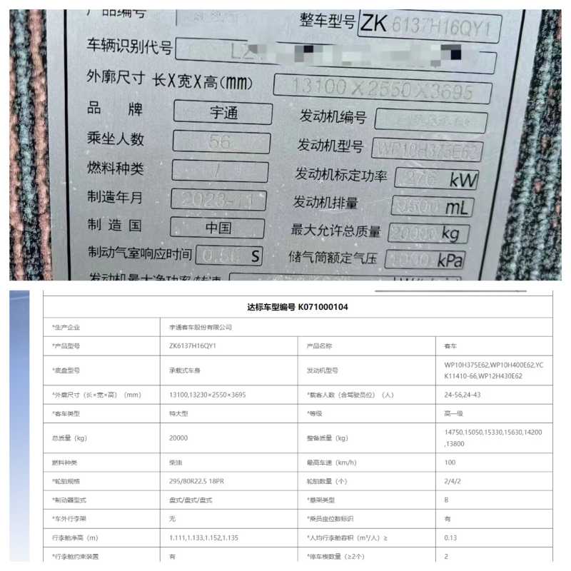 2024年上牌东北配国六有公告56座后吊轮宇通6137气囊车