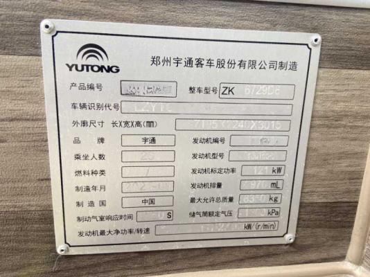 | 客车品牌 | 宇通客车 | 上牌时间 | 2021-10-19 |