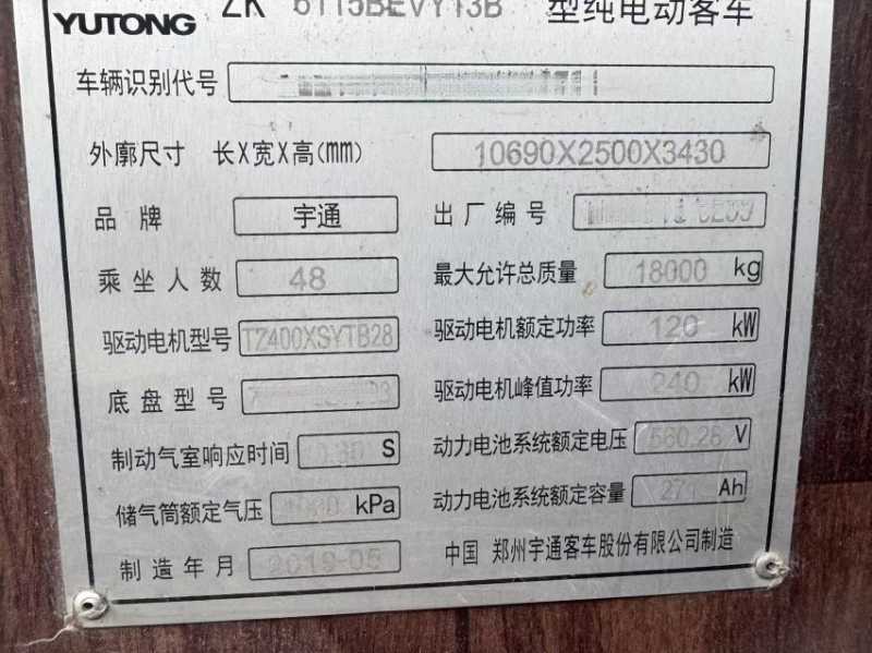 | 客车品牌 | 宇通客车 | 上牌时间 | 2019-06-19 |