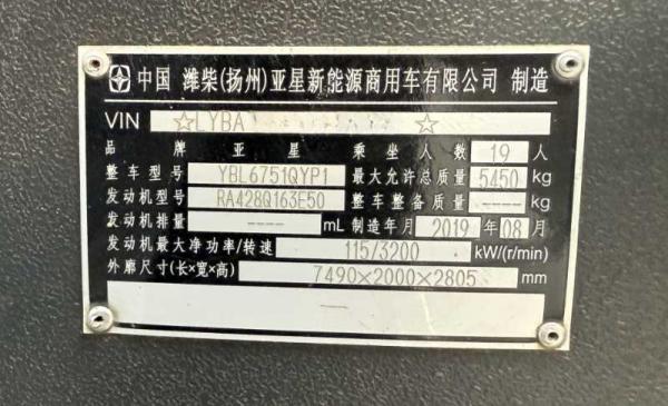 | 客车品牌 | 亚星客车 | 上牌时间 | 2019-09-12 |
