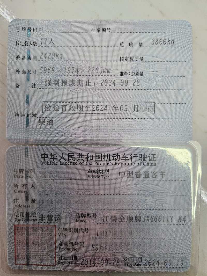 | 客车品牌 | 江铃全顺 | 上牌时间 | 2014-09-10 |