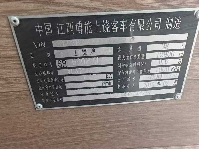 | 客车品牌 | 上饶客车 | 上牌时间 | 2019-02-13 |