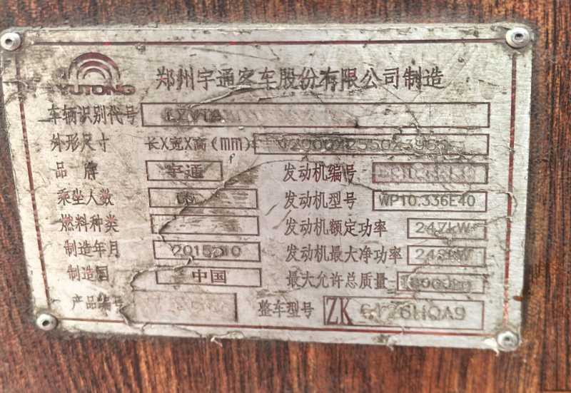 | 客车品牌 | 宇通客车 | 上牌时间 | 2015-11-14 |