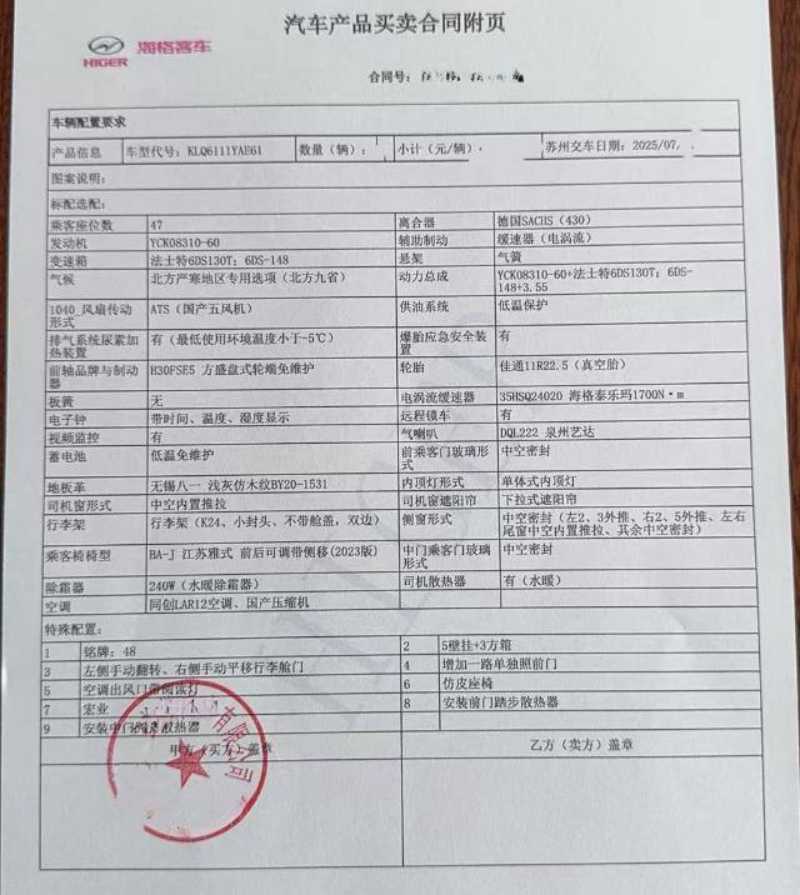 2025年7月上牌没满月的东北配国六有公告48座海格6111营运车