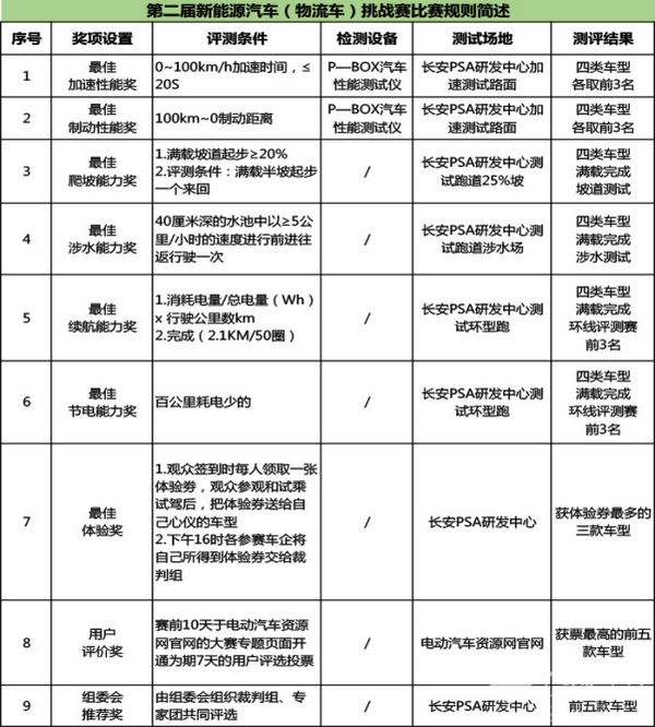 本届赛事针对电动物流车的关键指标进行横向评测,包括续航里程、百公里加速、爬坡性能、涉水能力、制动、节电性能等。这些性能可以说是车辆与生俱来的,并不能随意被篡改,所以参赛企业只有亮出自己的利剑,方能问鼎称雄。