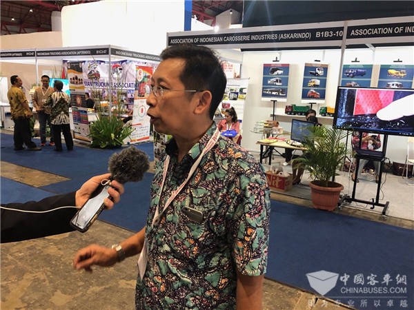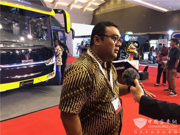 其中,IPOMI主席Kurnia Lesani Adnan先生与ASKRINDO主席Sommy Lumadjeng先生均在现场接受了Busworld China团队的现场采访。据Kurnia Lesani Adnan先生介绍,IPOMI成立于2012年,是印尼当地的青年客车运营商组织,也是印尼成立的首个客车运营商联盟,目前拥有38支车队。他谈到联盟内有许多客车都进口自中国,他本人也到过许多中国的城市,并表示非常期待来到Busworld China 2020的现场,有这样一个机会可以一站式的与中国上下游全产业链企业沟通,机会无疑是非常难得的。Sommy Lumadjeng先生也提到,ASKRINDO旗下目前拥有500多家车身企业,目前与中国企业的合作处于蓄势待发阶段,他对未来的前景非常看好,希望能借助Busworld China 2020的平台,在现场找到好的中国底盘生产企业进行合作,以满足印尼越来越大的客车采购需求。