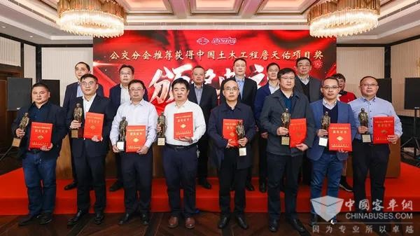 会议最后,颁发了公交分会推荐获得中国土木工程詹天佑项目奖。2021年9 月,由公交分会推荐申报的城市公共交通工程项目“武汉东湖国家自主创新示范区有轨电车试验线工程”,荣获第十八届中国土木工程詹天佑奖,这是全国有轨电车行业首个获此殊荣的工程项目。同时,该获奖工程项目也是继“常州市 BRT 一号线工程”、“无锡市综合交通枢纽”、“广州市中山大道快速公交(BRT)试验线”工程后,由公交分会推荐的第四个荣获詹天佑奖的工程项目。据了解,2021年10 月,公交分会推荐的“成都金沙公交枢纽综合体产业融合 TOD 创新试点项目”,目前已顺利通过第十九届詹天佑奖的初审。