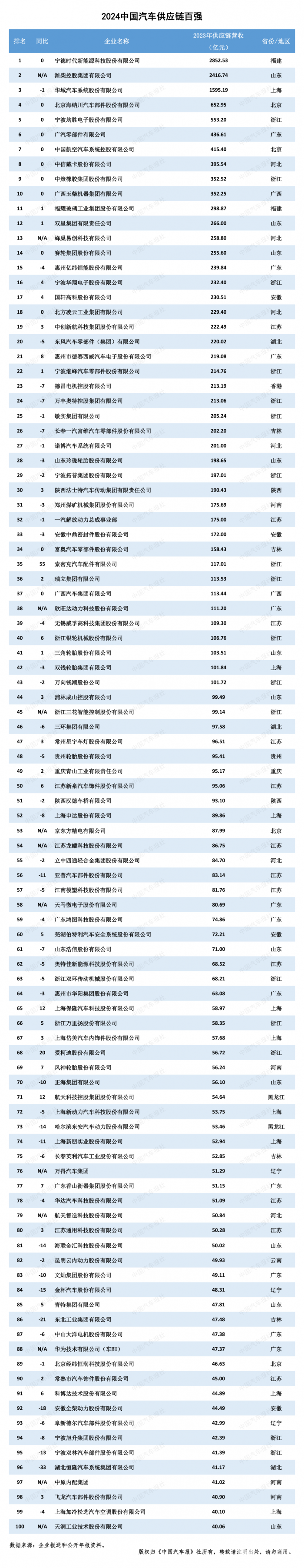 2024汽车供应链“双百强”出炉!新能源与智能化企业表现突出