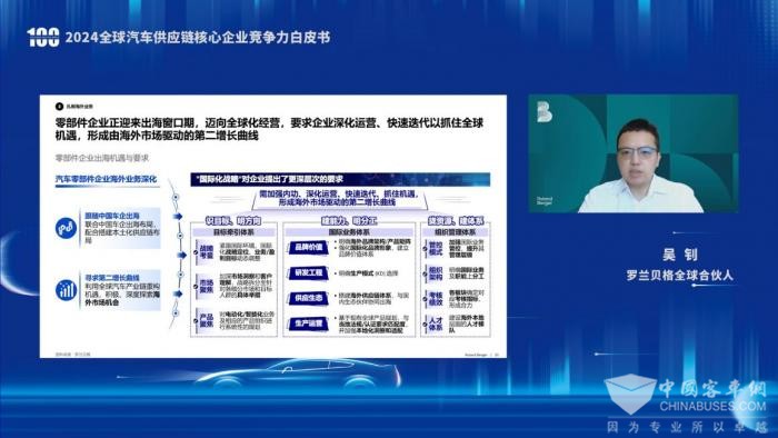 罗兰贝格全球合伙人吴钊表示,零部件企业正迎来出海窗口期,迈向全球化经营,要求企业深化运营、快速迭代以抓住全球机遇,形成由海外市场驱动的第二增长曲线。