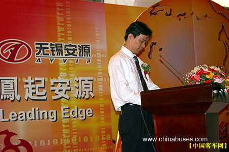 其次,我表示热烈的祝贺。无锡安源汽车有限公司在建厂不到一年的时间里,就取得了令人惊讶的成绩。去年成功出口澳大利亚、越南、苏丹、菲律宾、英国等国家;不久前安源客车进入马来西亚政府采购名单,以50台大单的份额成功进入了马来西亚市场。国内市场风景更是一片独好,进入06年以来,安源客车的销售额持续上升,8月份进入了中国客车行业前15名的行列!!在国内客车行业,安源被誉为:奇迹客车厂!在无锡安源客车的身影已经随处可见,高质量、高性价比已成为其代名词。|在此,我仅代表锡山区政府向无锡安源汽车有限公司的所有员工表示祝贺!