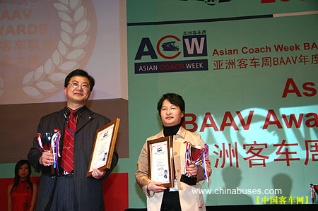 | 在3月28日晚世界客车博览亚洲展举动的颁奖晚会上,牡丹月亮神系列公交型获得了"年度最佳中型巴士大奖""年度最佳巴士造型奖"两项大奖。