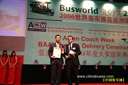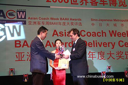3月28日下午5点30分,2006亚洲客车周---BAAV年度大奖颁奖典礼在busworld四号馆内隆重揭晓,上海加冷松芝汽车空调有限公司荣获06年最佳客车空调制造商奖。