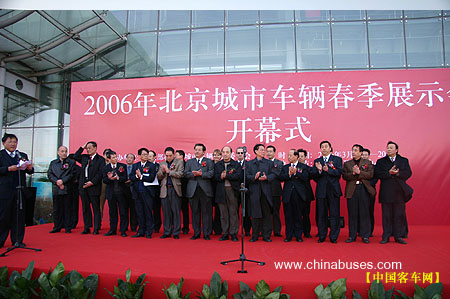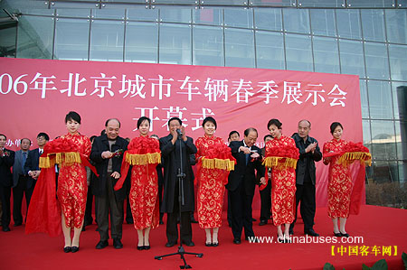中国江南网页版讯 继2005年北京公交招标车辆展示会成功举办后,全国城市客车发力自主品牌,为我国城市建设及公共交通事业的发展起了强大的作用,而今,北京再掀狂潮,迎来全国城市客车颠峰对决。3月18日上午,2006年北京城市车辆春季展示会在北京经开汇展中心隆重开幕,来自六十多家全国省会、计划单列城市和地区城市公交企业、十多家旅游汽车公司、七十多家行业内生产厂家及全国数十家新闻媒体的代表齐聚一堂,共同分享全国高端城市客车盛宴。