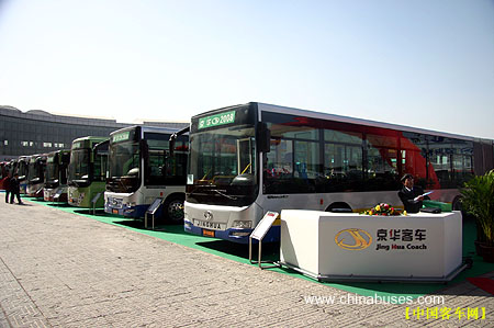 作为北京城市客车的东道主,北京京华客车有限责任公司在此次“2006年北京城市车辆展示会”上展出了七款公交车辆,包括京华巡洋舰、京华风景线、京华新干线、蓝宝石、绿宝石等系列车辆,为展会增色颇多。