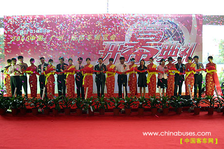炎日悄逝,金秋送爽,时值中国客车业蓬勃发展之际,2006年中国(广州)商用车展览会于9月13日上午在广州花城会展中心隆重开幕。中国道路运输协会姚明德会长、中国城市公共交通协会朱滢秘书长、建设部科技委城市车辆专家委员会李世豪主任、中国道路运输协会秘书长王丽梅女士、广东省道路运输协会肖玉堂会长、厦门金龙旅行车有限公司销售公司张其建总经理以及广东省交通厅等相关部门领导出席了开幕仪式。