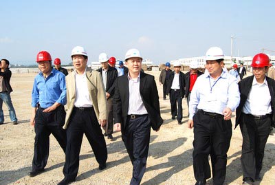 2月5日,金湘军(前排中)一行考察玉柴铸造中心项目工地
