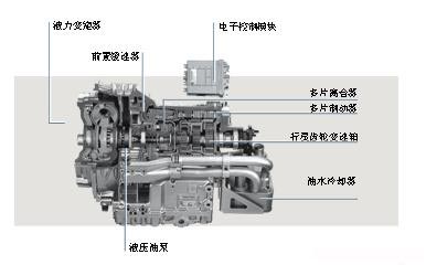 Ecomat采用了典型的模块化设计,主要由液力变矩器、供油系统、缓速器、行星齿轮组、电子控制单元、冷却器等部分组成:
