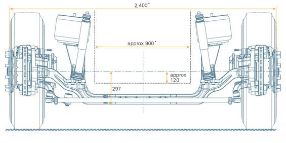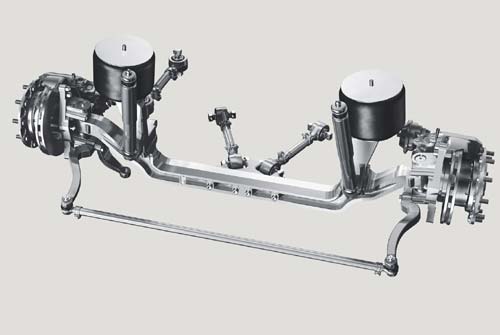 RL 85 A——典型的刚性前桥,它是一种在成本和经济效率方面,都有相当吸引力的车桥系统。刚性前桥的特点就在于它的高强度,易维护,和没有驾驶舒适性方面的限制。这种低地板前桥系统可用于宽度从2.3到2.6m的车辆。