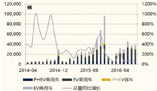2016年上半年,中国新能源汽车产销分别达到17.7万辆和17万辆,依旧是全球最大的新能源车市场。1-2月受春节和政策因素影响而产销较低,随着政策调整推进,上半年的3-6月新能源车逐步实现恢复性增长,6月冲刺到3.5万台水平。下半年的7-8月新能源车处于3万台左右的位稳定状态,等待进一步的增长动力。