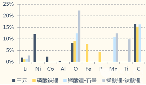 不同动力锂电池正极材料中所含的有价金属成分不同,其中潜在价值最高的金属包括钴、锂、镍等。例如,三元电池中锂的平均含量为1.9%、镍12.1%、钴2.3%;此外,铜部分、铝部分等占比也达到了13.3%和12.7%,如果能得到合理回收利用,将成为创造收入和降低成本的一个主要来源。