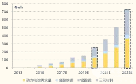 根据测算,商用车(按3年电池寿命假设)和乘用车(5年)所使用的动力锂电池报废量,将在2020年分别达到27Gwh和4.2Gwh,在2023年分别达到84Gwh和17.5Gwh。