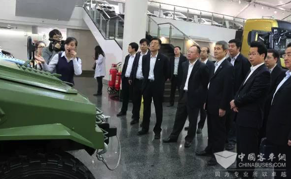 吴总一行参观东风汽车公司展厅 当日上午,吴总一行首先来到东风汽车公司展厅,参观了东风军用车、商用车、乘用车、新能源车等各领域主要车型。东风汽车集团股份有限公司副总裁邱现东、东风汽车公司新能源汽车事业管理部部长刘国元对各车型应用领域、性能参数、产品优势等情况进行了详细讲解。参观结束后,吴总一行对东风A60纯电动轿车、E30纯电动微型车进行了试乘试驾。