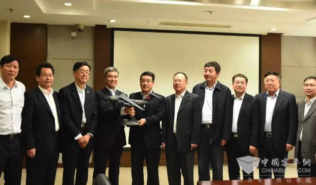 双方领导合影留念 东风汽车公司战略规划部部长黄刚、技术中心主任谈民强、新能源汽车事业管理部处长徐平兴、东风电动车辆股份有限公司副总经理向开永,深圳市航盛电子股份有限公司副总裁关景成、华中区经理阮嘉萌,中航锂电(洛阳)有限公司营销公司副总经理张永龙、经理部副部长何一、华中营销部部长赵晓亮参加了本次交流活动。