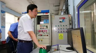 玉柴集团公司董事局主席晏平为中国首台对平对置柴油发动机点火