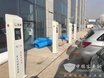 2016年12月14日,记者在西宁市政府行政服务中心外见到了新晋上岗的4个充电桩。这些充电桩上每一个都有1米多高,并带有操作区,操作区上包括液晶显示区和读卡区,需要给车辆充电时将一根充电线与充电桩相连就能实现快速充电。同时,为加快新能源电动车的推广示范引领作用,公司投入12辆北京牌150型新能源电动车,并交予市机关事务管理局、市审批局等部门开展新能源电动车辆推广示范工作。