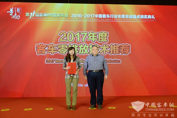 万润纯电动总成系统获“2017年度客车零排放技术推荐”