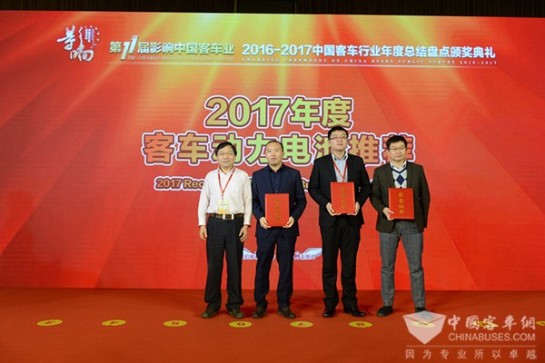 获得“2017年度客车动力电池推荐”