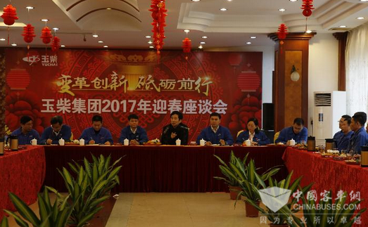 2017年1月18日,玉柴集团在总部举办2017年迎春座谈会,集团骨干代表共80多人共享企业发展成果,共商企业发展大计,弘扬“尊重劳动、尊重知识、尊重人才、尊重创造”的优良传统。