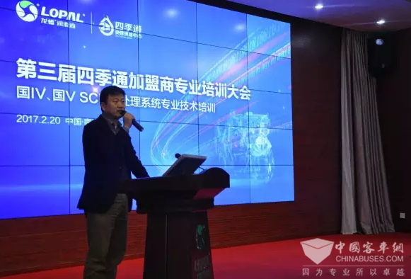 本届四季通加盟商培训大会集技术、商机、干货于一体,为了帮助四季通加盟商更加深刻地了解商用车保养,大会特别邀请了厚德融智(北京)环保技术研究院专家,到场开展针对国IV、国V SCR后处理系统的专业技术培训。现场,孙志萍、陈建春等专家通过理论+实操相结合的方式,系统详细地介绍了SCR系统基本原理、零部件,包括尿素泵工作原理等等,专家们深入浅出的讲解,让在场嘉宾受益匪浅。