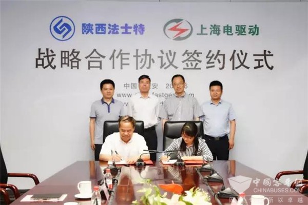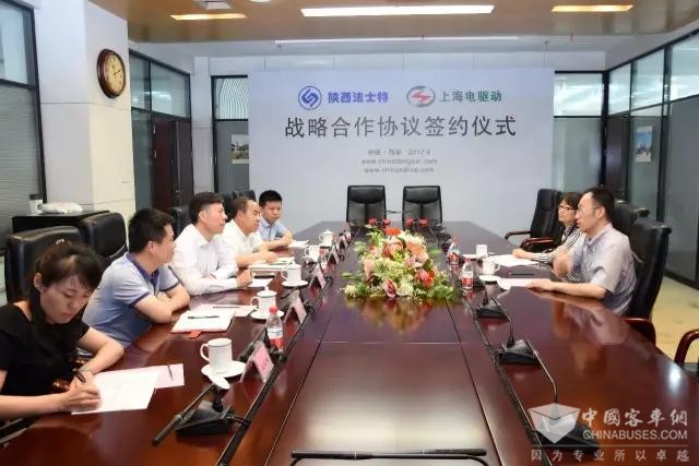 2017年6月14日,法士特公司与上海电驱动公司在法士特汽车传动工程研究院签署战略合作协议。法士特公司董事长、党委书记严鉴铂,副总经理王顺利、刘义和上海电驱动公司总经理贡俊、副总经理王文丽出席签约仪式。