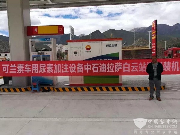 2017年7月26 日,拉萨的天空,白云飘过。位于拉萨西郊20多公里的中石油白云加油站依旧繁忙,由可兰素研制的柴油车尾气净化液加注机顺利装机,投入使用。