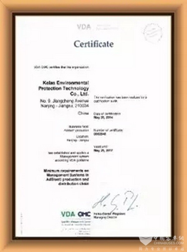 2010年、2011年可兰素分别获得了美国石油学会API DEF认证和德国汽车工业协会VDA AdBlue认证。此时的国内车用尿素还鲜有人知,车用尿素行业还没有任何质量标准。
