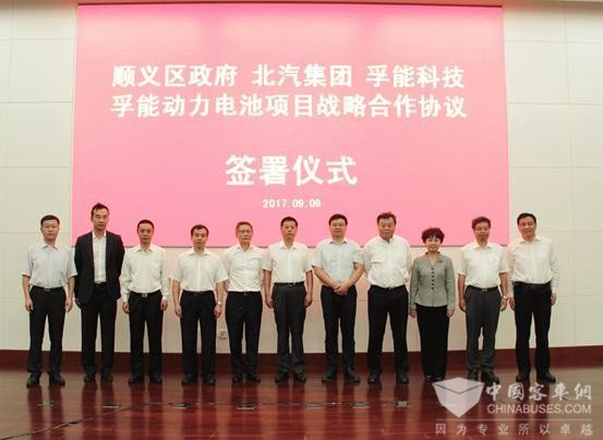 2017年9月9日,孚能科技(北京)新能源动力电池项目战略合作协议签署仪式在位于顺义的北京汽车产业研发基地举行。