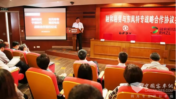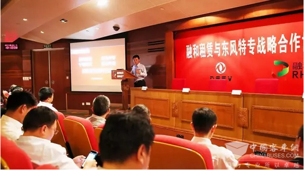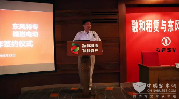 签约仪式上,战略合作的四方代表分别发言。东风特专总经理李保才介绍了新能源汽车的发展历程,回顾了与融和租赁开展合作的精彩瞬间,对“充换并行+中央厨房式换电”的新能源汽车运营模式,表示了高度认同,并对未来的合作充满期待。