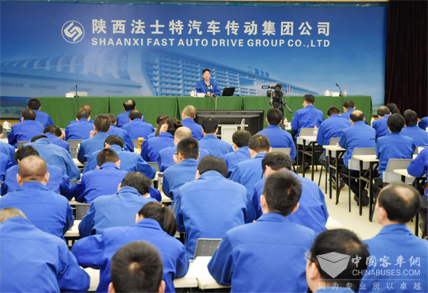 在分析国内外市场形势时,严鉴铂董事长指出:纵观国外汽车市场,电动化趋势不可逆。德国虽未确定燃油车禁售时间,但政府全力支持推进汽车行业向电动化转型;美国逆环保大势而行,持续放宽燃放标准遭致反对;世界各国燃油车禁售“紧箍咒”越来越紧,促使全球各大汽车制造商进一步加快电动化步伐。由此可见,绿色环保、零排放在全球汽车制造业已形成共识。国际零部件巨头电动化竞赛力度超乎想象,无论是在新技术还是新产品方面,国外跨国公司仍然遥遥领先。作为中国零部件企业,我们要戒骄戒躁、正视差距、弥补不足,全力加快新能源产品研发制造步伐,努力成为国内零部件市场转型中的弄潮儿。再看国内汽车市场:制造业回暖以及“一带一路”的纵深拓展,为重卡传统“金九”市场再镀一层金,销售火爆。然而由于冬季环保限产等原因,四季度市场存在很多不确定性,重卡销售出现隐忧。但“一带一路”倡议深入实施,助推商用车步入了新征程、开启了新空间,同样为国内零部件产业铺就了布局海外市场的光明大道。但机遇与挑战并存,面对商用车变速器产业的纵向一体化战略挑战、高端细分市场需求启动和逼迫行业转型升级的形势,法士特要以“高品质、高性能、高回报”为前提,在智能化、智能制造上更专注、更投入、更努力,努力铸就法士特精品,争夺更大的市场蛋糕,实现更好更快发展。