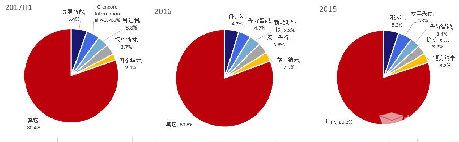 科达利为锂电池结构件供应商,在公司的供应体系中相对较为稳定,2015与2016年均位居首位,2017H1位列第三。由于其主要为锂电池主要构成,因此2017H1中位次下滑并不表示其在供应体系中的重要性降低,其仍为锂电原料中的中国最大供应商。