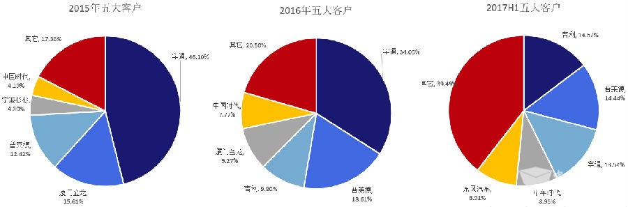 可以看到,公司实现了新能源车各车类下游巨头的深度绑定。此外,前五位客户营收占比60%左右,相比16年的80%左右趋于分散,而且乘用车的占比逐渐提高。这表明公司动力电池客户数量和质量不断提升,领先优势明显。