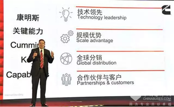 康明斯副总裁,中国区发动机事业部总经理刘晓星提出,针对不断变化的环境和挑战,康明斯会在全新的企业使命、愿景和价值观下,持续致力于核心柴油业务的成功并在能源多元化,互联和智能化,动力总成化中引领技术变革,不断创新,追求卓越,为客户提供最佳动力解决方案。