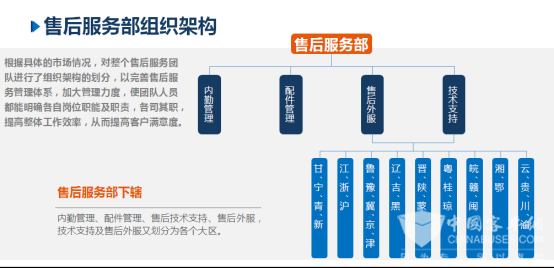 在保障市场车辆运行的过程中,建立起了专业高效的售后服务团队。据江南网页版了解,根据具体的市场情况,绿控对整个售后服务团队进行了组织架构的划分,以完善售后服务管理体系,加大管理力度,使团队人员都能明确各自岗位职能及职责,各司其职,提高整体工作效率,从而提高客户满意度,目前,绿控服务团队由内勤管理、配件管理、技术服务管理和技术支持管理四部分组成,总人数近100人,专业性强服务效率高,其中本科学历占比80%以上,分布在全国8个服务区域175个城市。